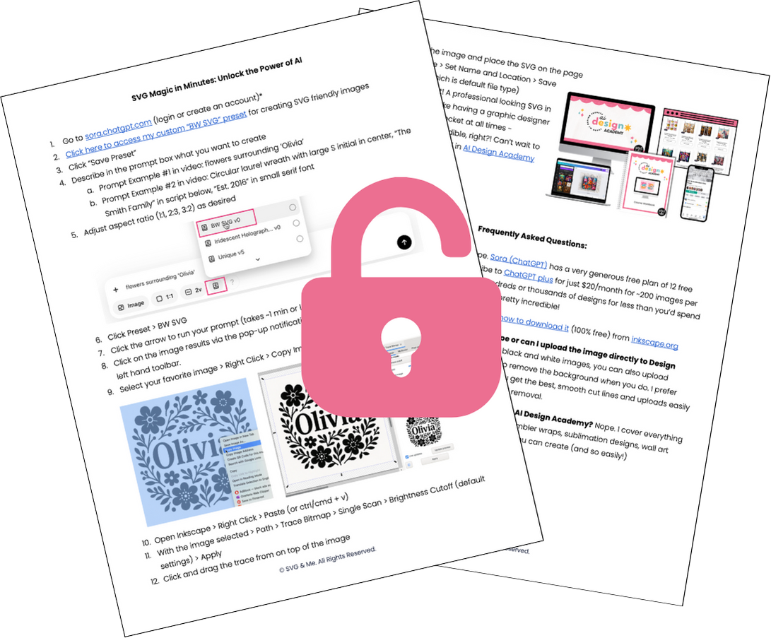 A SVG is the file type that works best with cutting machines like Cricut, Silhouette, etc. However, even if you don't have a cutting machine, check out the training because you can use the images you create with AI to make so many things from sublimation designs, phone backgrounds, wall art and more! The options are truly endless...